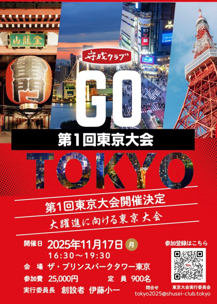 この度、全国規模のビジネス交流イベント、守成クラブ東京大会(11月17日開催)が迫っています。
